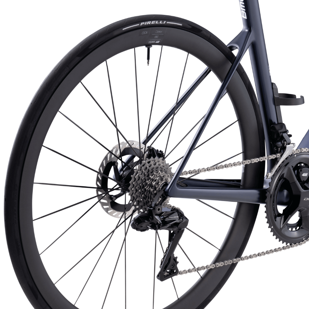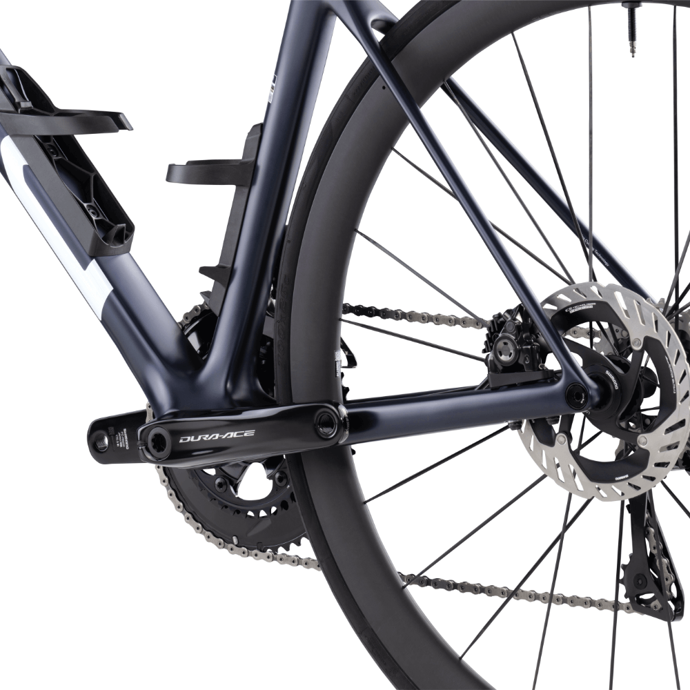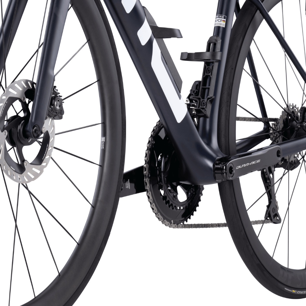 Klucz do maksymalnych osiągów tkwi w wyposażeniu: bezprzewodowy napęd SHIMANO Dura-Ace Di2 2×12 z dwustronnym miernikiem mocy 4iiii umożliwia strategię wat-po-wacie, jednoczęściowy kokpit ICS Carbon Evo łączy ekstremalną sztywność z pełną integracją przewodów, a koła DT Swiss ARC 1100 DICUT 38 mm na piastach 180 Ratchet EXP obniżają opór i zwiększają responsywność. Jeśli Twoim żywiołem są górskie etapy i polowanie na sekundy, Teammachine SLR 01 TWO będzie Twoją bronią zarówno na stromych serpentynach, jak i na mecie wyścigu.
