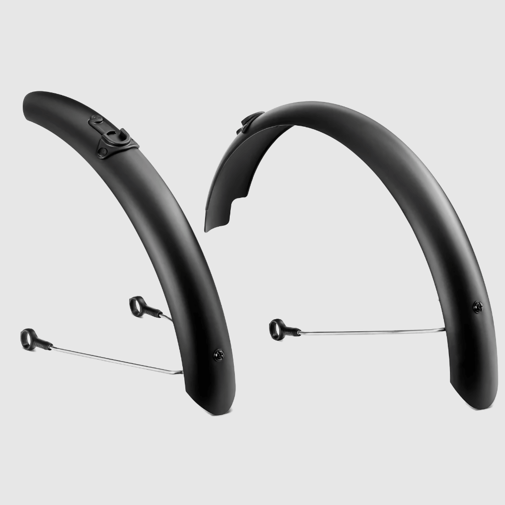 Błotniki wykonano z matowego, czarnego tworzywa, a solidne, metalowe wsporniki zapewniają stabilne trzymanie i długą żywotność. Dzięki zaczepom Click-On montaż przebiega błyskawicznie: wystarczy jedno kliknięcie, aby były gotowe do drogi. Idealnie dopasowują się do opony, gwarantując optymalną ochronę przed rozpryskami wody i błota.