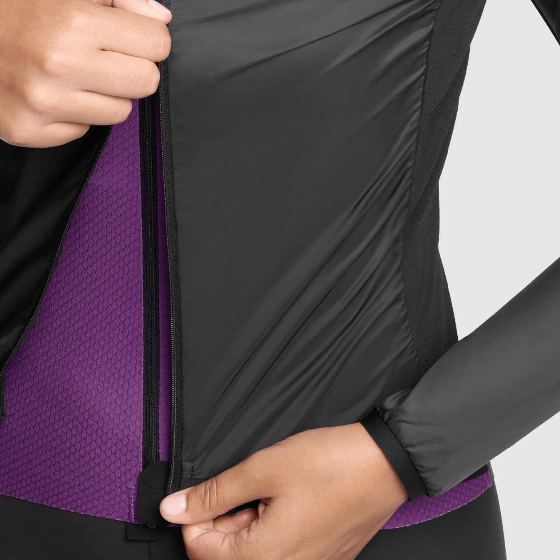 Termoregulacja: Dzięki dwukierunkowemu zamkowi możesz stworzyć „komin wentylacyjny” od dołu, co jest zbawienne podczas intensywnych interwałów w chłodne dni.
