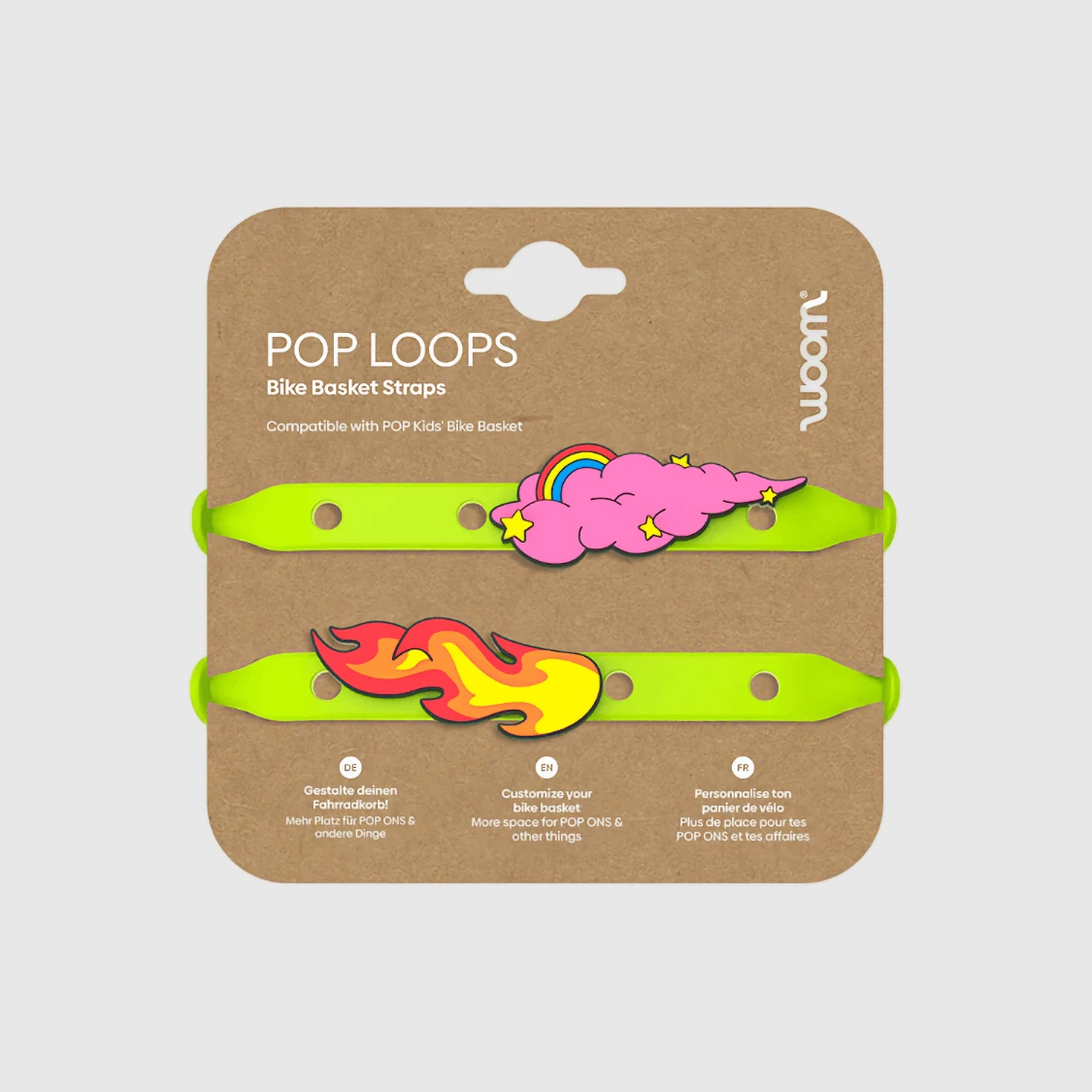 Paski POP LOOPS to bilet do świata nieograniczonej wyobraźni. Dzięki nim koszyk woom POP staje się bazą do kreatywnych projektów. To nie tylko dodatkowe miejsce na przypinki POP ONS, ale elastyczny system, który pozwala przymocować do roweru niemal wszystko – od ulubionej maskotki po znaleziony na szlaku wyjątkowy patyk. Wszystko po to, by każdy rower woom był tak unikalny, jak dziecko, które na nim jeździ.